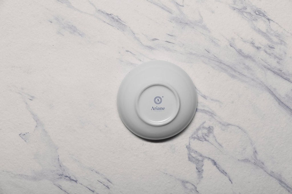 Ariane Vital Coupe 4 5/7" White & Blue Porcelain Coupe Bowl - 12/Case (AVCARND65022012)
