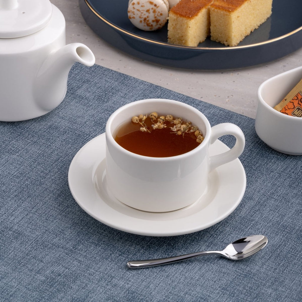 Ariane Prime 7 7/9 Oz Prime - Warm White Porcelain Stackable Tea Cup - 12/Case (APRARN000043023) - iFoodservice Online