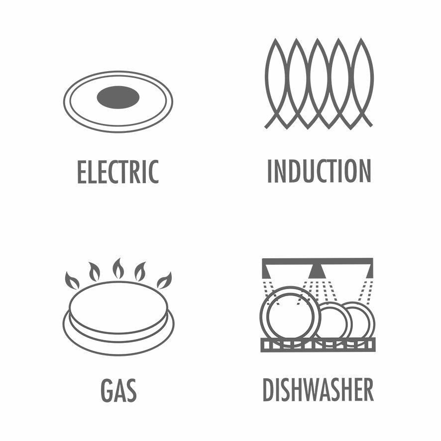 • Suitable for induction, gas, ceramic hobs and electric stoves