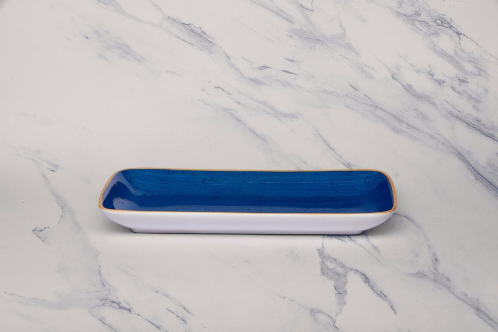 Ariane Gn 11'' x 5 1/2'' Twister Blue Porcelain Rectangle Plate - 6/Case (AGNARN264011028)
