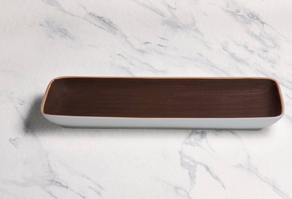 Ariane Gn 11'' x 5 1/2'' Twister Mokka Brown Porcelain Rectangle Plate - 6/Case (AGNARN263011028)
