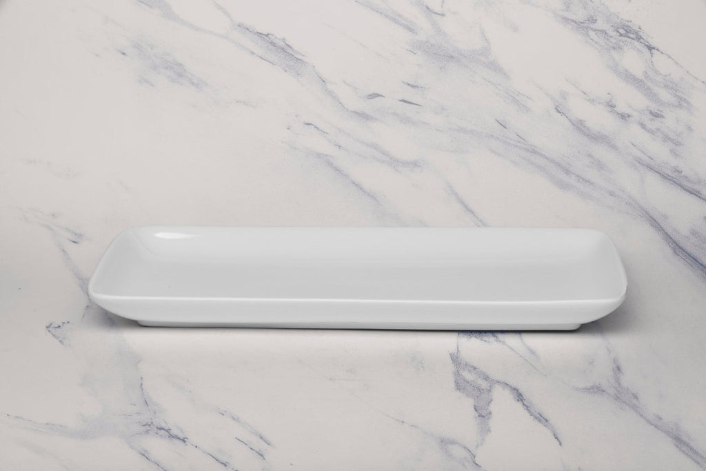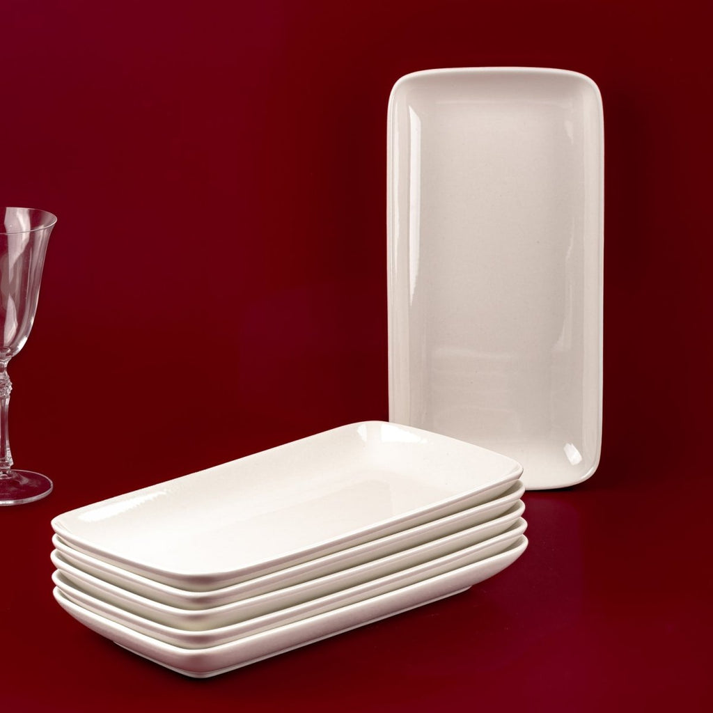 Ariane Gn 14 1/6'' x 6 1/2'' Buffet-Warm White Porcelain Rectangle Plate - 6/Case (AGNARN000011036)