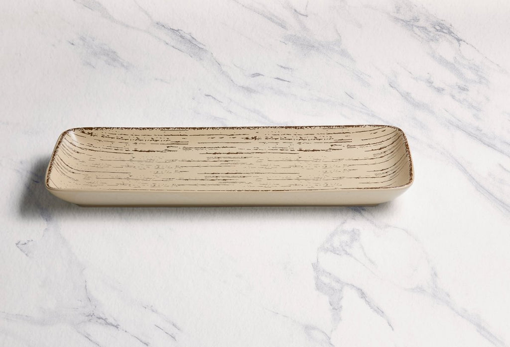 Ariane Gn 14 1/6'' x 6 1/2'' Tornado-Sand Dollar Porcelain Rectangle Plate - 6/Case (AGNARN428011036)