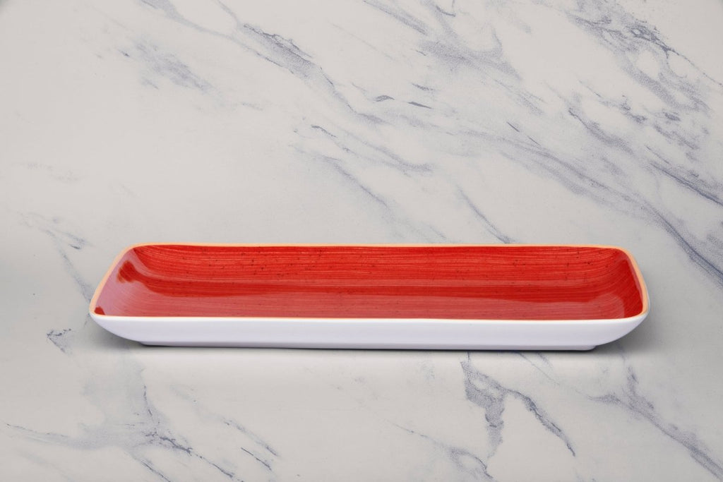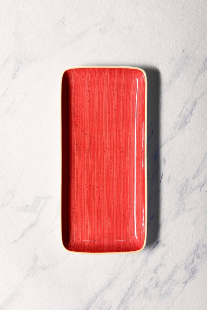 Ariane Gn 14 1/6'' x 6 1/2'' Twister Red Porcelain Rectangle Plate - 6/Case (AGNARN204011036)