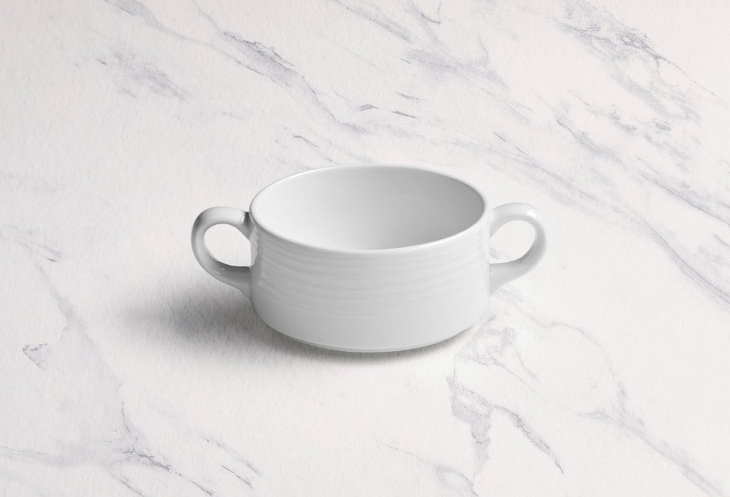 Ariane Prime 10 1/7 Oz White Eclipse Porcelain Soup Bowl With 2 Handle - 8/Case (APRARN120027030)