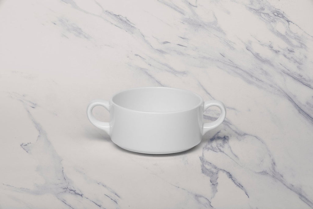 Ariane Prime 10 1/7 Oz Prime-Warm White Porcelain Soup Bowl With Two Handle - 8/Case (APRARN000027030)