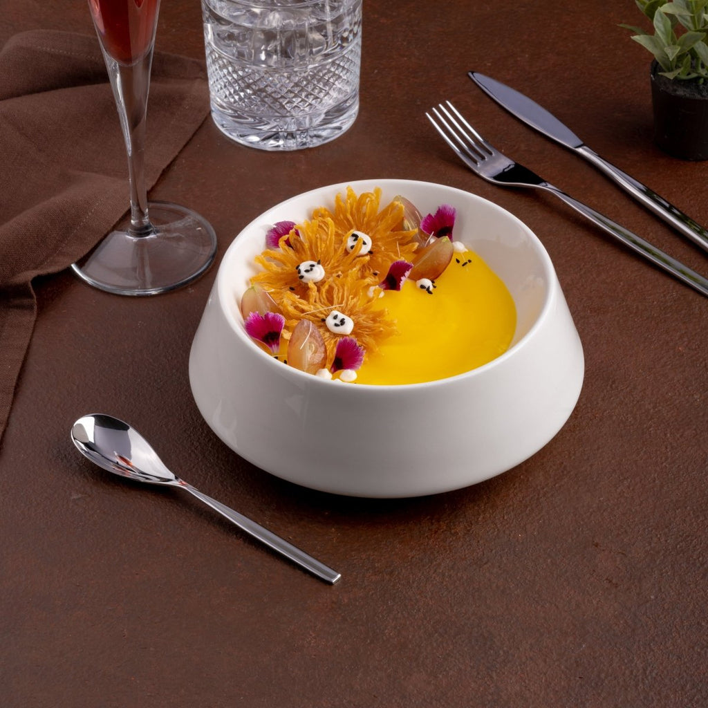 The Ariane Slide 7" Slide-Warm White Porcelain Bowl (ADEARN000022018) is crafted from fine porcelain, offering high chip resistance and lasting durability. With a smooth appearance and excellent glaze performance, it ensures both elegance and functionality. This bowl is microwave, dishwasher, and salamander safe, ideal for professional and home use. Its stackable design saves space, while thermal shock resistance and abrasion-proof quality enhance reliability. Designed for perfect functionality, it seamlessly combines performance and style, making it a versatile choice for any dining setting. Comes in a set of 2.
