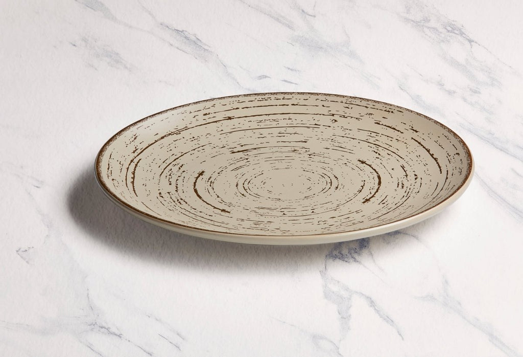 Ariane Vital Coupe 10 5/8" Tornado-Sand Dollar Gray Porcelain Coupe Round Rimless Plate - 6/Case (AVCARN428011027)