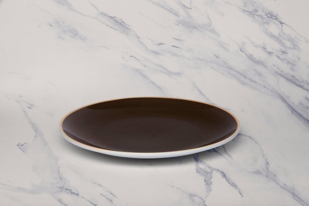 Ariane Vital Coupe 10 5/8" Twister Mokka Dark Brown Porcelain Coupe Round Rimless Plate - 6/Case (AVCARN263011027)
