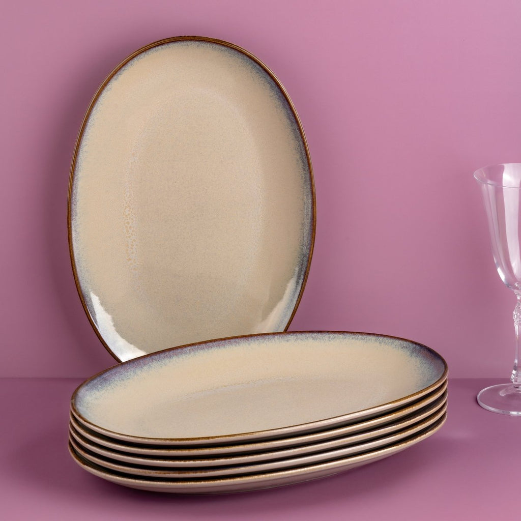 Ariane Vital Coupe 14 1/6" Splash Beige Porcelain Coupe Oval Plate - 6/Case (AVCARN257015036)
