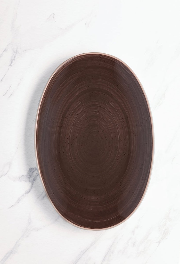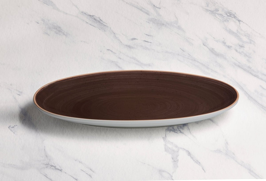 Ariane Vital Coupe 14 1/6" Twister Brown Porcelain Coupe Oval Plate - 6/Case (AVCARN263015036)