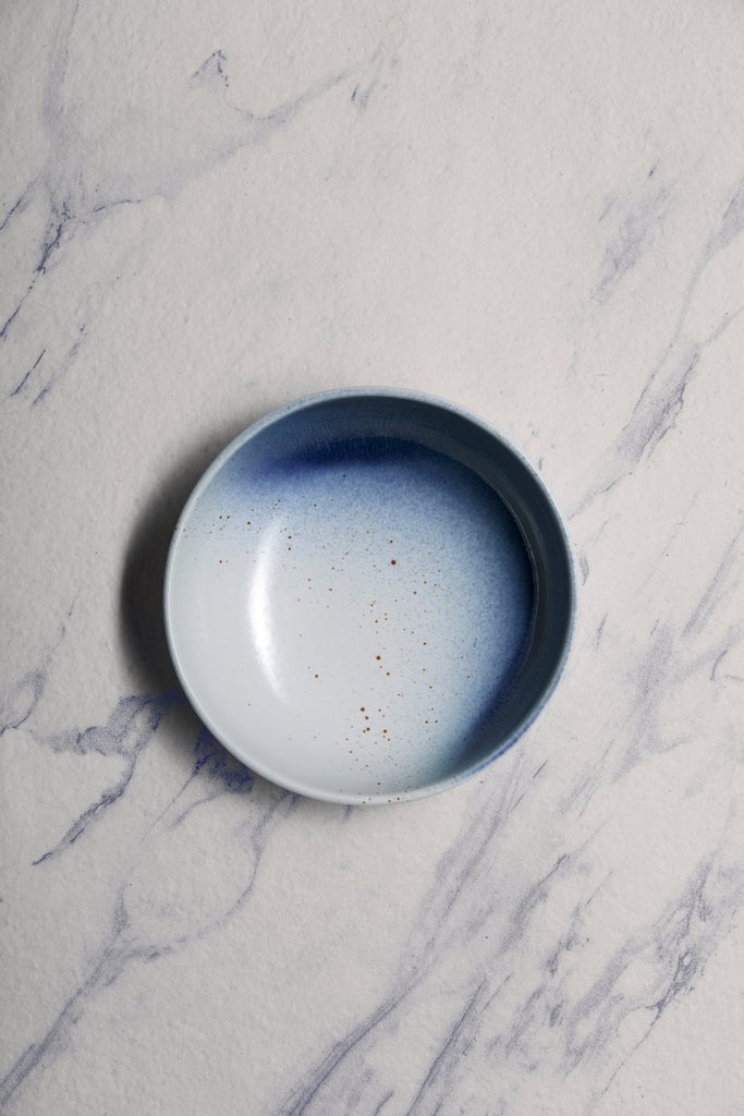 Ariane Vital Coupe 8 1/4" White & Blue Porcelain Coupe Round Deep Plate - 6/Case (AVCARND65012001)