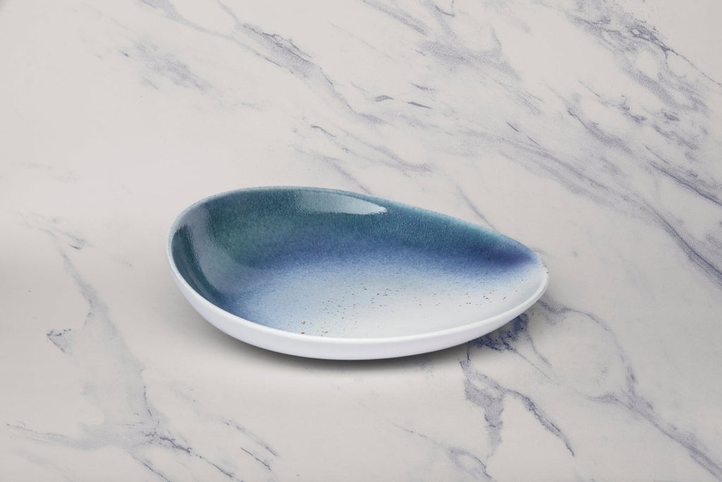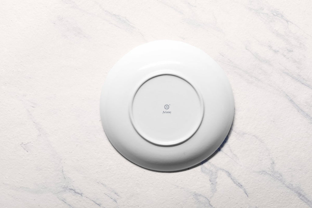 Ariane Vital Coupe 9 5/6" White & Blue Porcelain Coupe Round Deep Plate - 6/Case (AVCARND65012025)