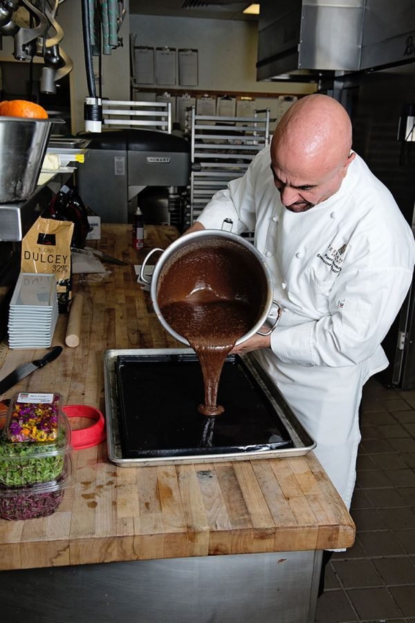 - spread or pour any type of preparations: fruit jellies, ganaches, coulis, crème