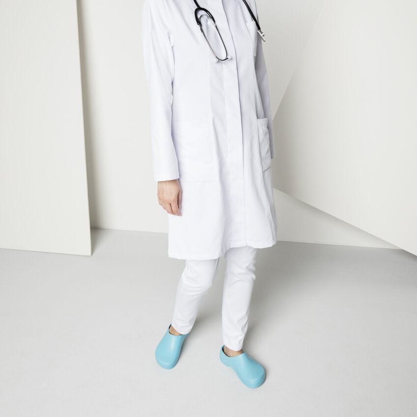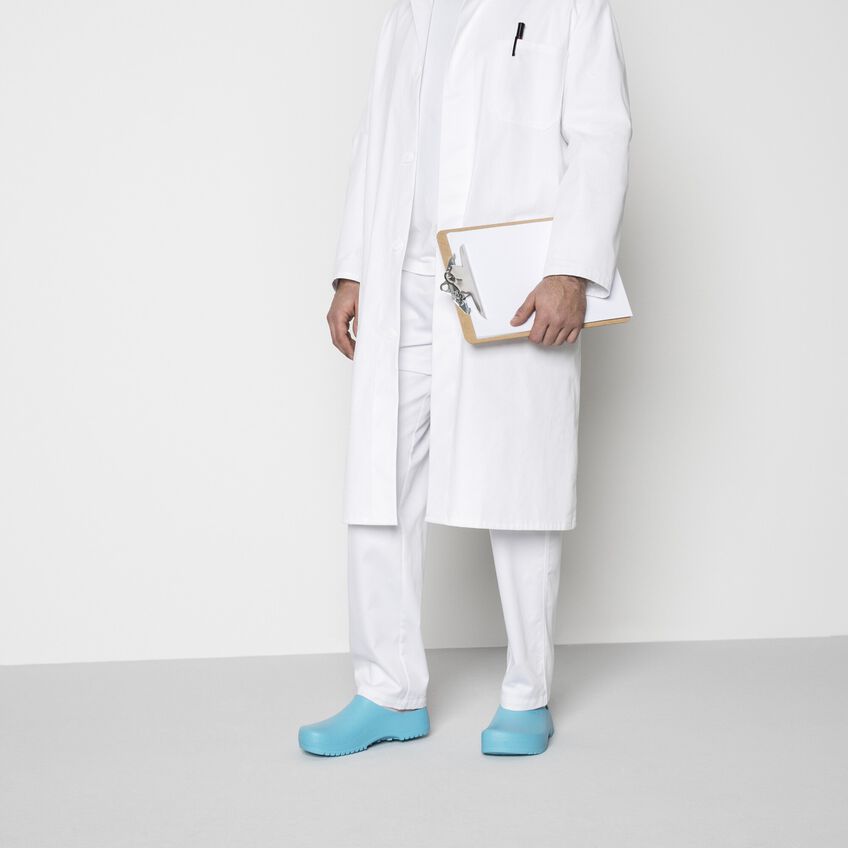 The Birkenstock Shoes Super Birki in Ciel Light Blue (68501) are crafted from durable polyurethane, making them ideal for various environments. These slip-resistant clogs offer exceptional comfort with their contoured footbeds, providing excellent arch support and cushioning. The vibrant Ciel Light Blue color adds a touch of style to their practicality. Perfect for both professional and casual settings, these shoes are easy to clean and designed for all-day wear