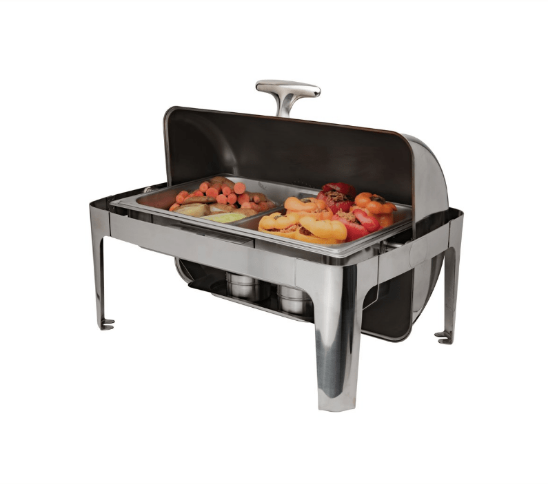 The Browne Foodservice Cadence Full Size Rectangular Chafer (575137) combines functionality and elegance for any catering event. Its roll top cover ensures easy access to food while keeping it warm. Constructed with durable stainless steel, it offers reliability and style. Perfect for buffet setups, this chafer elevates your presentation while maintaining optimal food temperature.