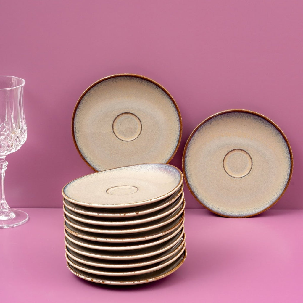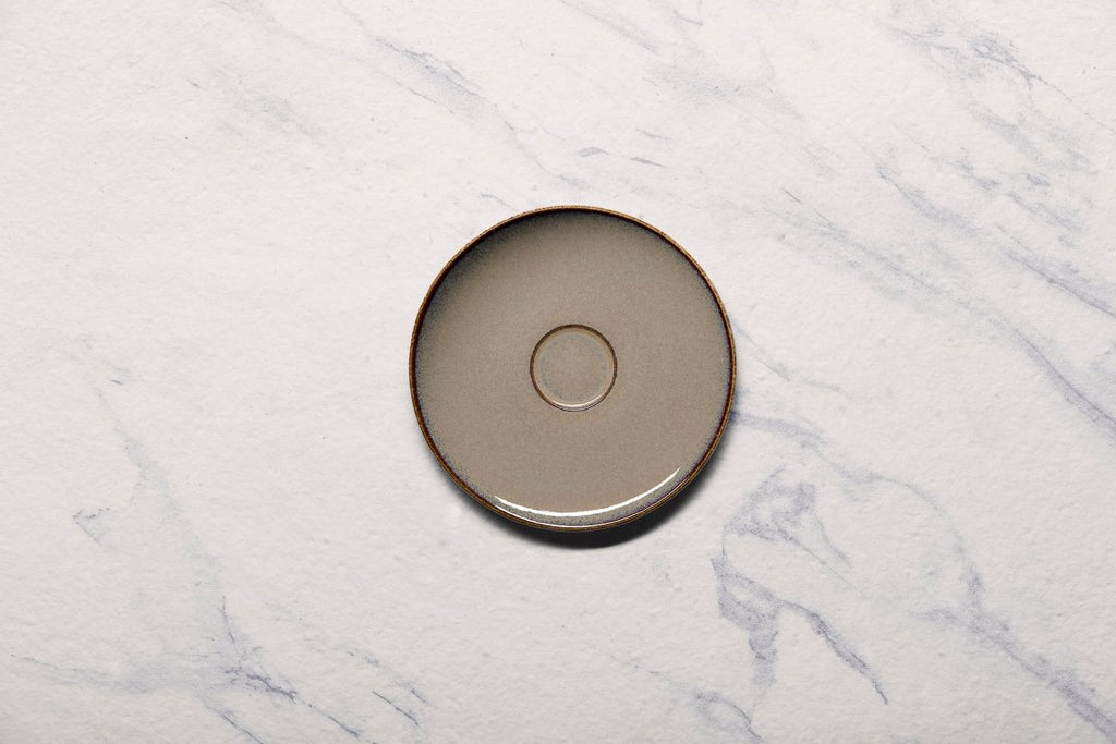 Ariane Vital Coupe 5 1/8" Splash Beige Porcelain Coupe Elevated Espresso Saucer - 12/Case (AVCARN257014013)