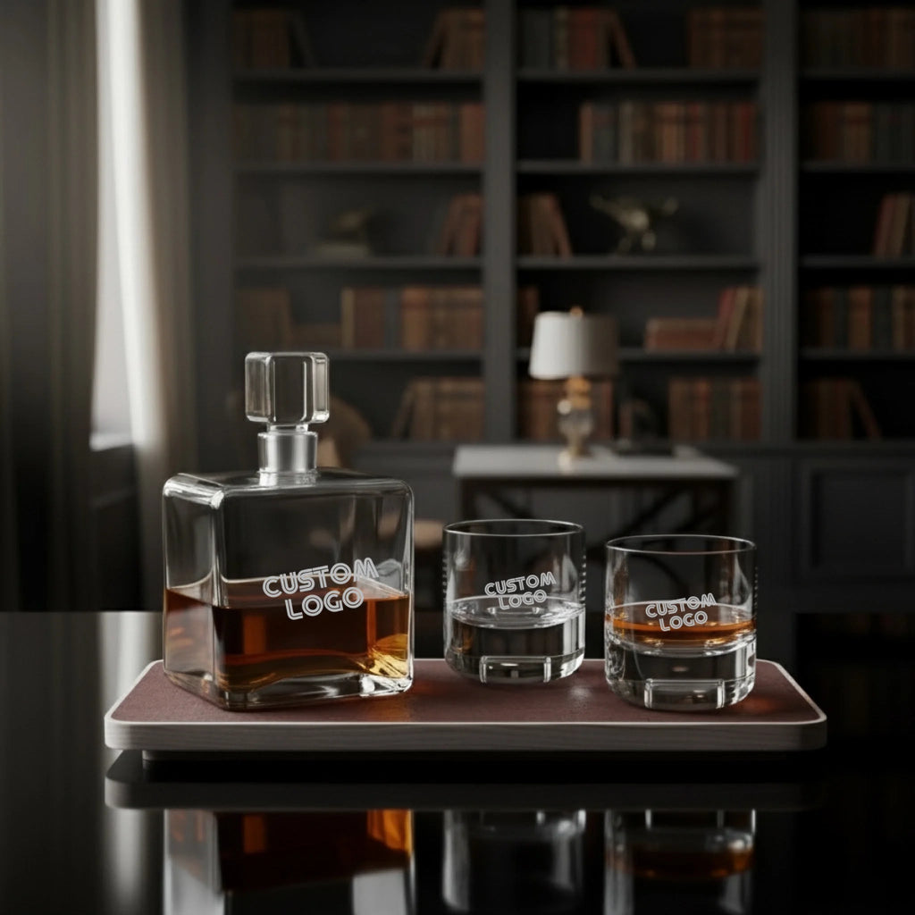 Custom Laser Engraving Available — Personalize the decanter, tumblers, or tray with names, initials, dates, or corporate branding.