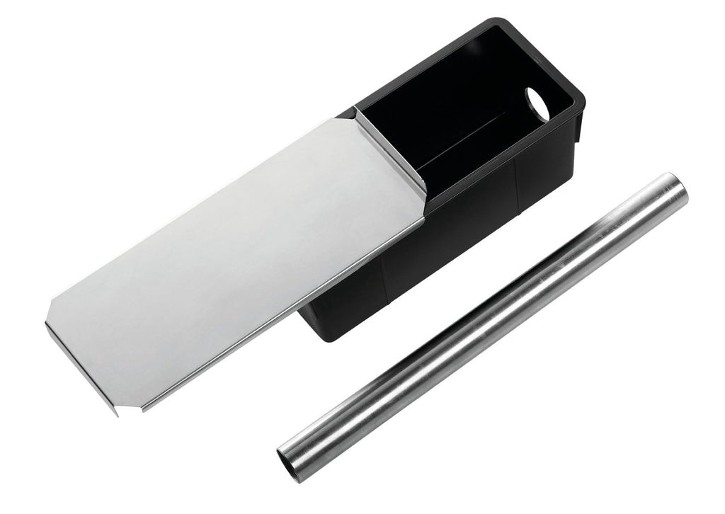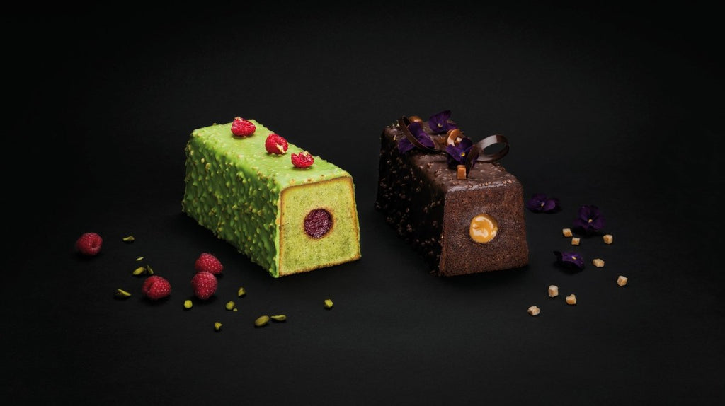The cake is baked but hollow in the middle. Fill it with colorful textures and different flavors! Stainless tube. Optional stainless steel sliding lid. Heat resistant from -5 °F to +500 °F. Dishwasher safe.