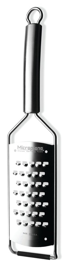 For zucchini, potatoes, soft cheeses, carrots and cabbage. Make chunky slivers of fresh cheese for salads, tacos, or pizza with the Microplane® Extra Coarse Grater. Pair it with the Grater Attachment for finger protection. All Microplane® Professional Series graters are dishwasher-safe, featuring all stainless steel construction, comfortably curved handles and non-slip rubber feet. Non-slip end for added stability.