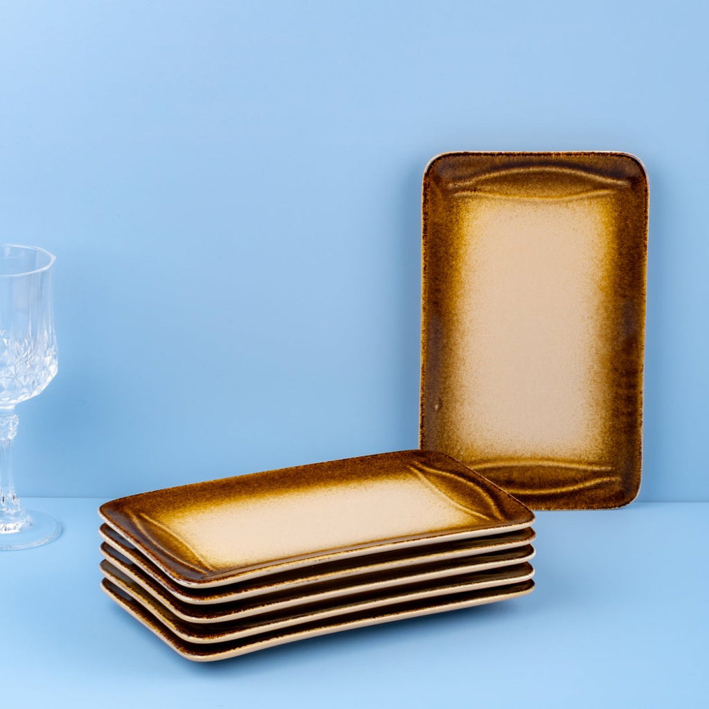 Ariane Laps 12 3/5"x 6" Sahara Porcelain Broad Rectangle Platter - 6/Case (ALPARND63011003)