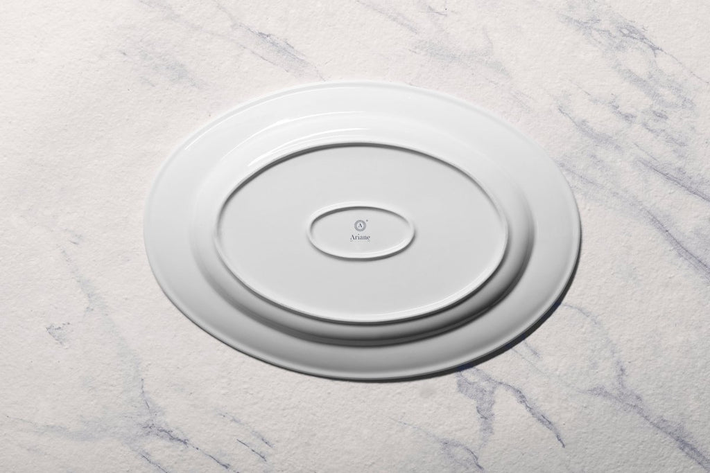 Ariane Prime 12 3/5'' x 8 2/3'' White Eclipse Porcelain Oval Platter - 6/Case (APRARN120015032)