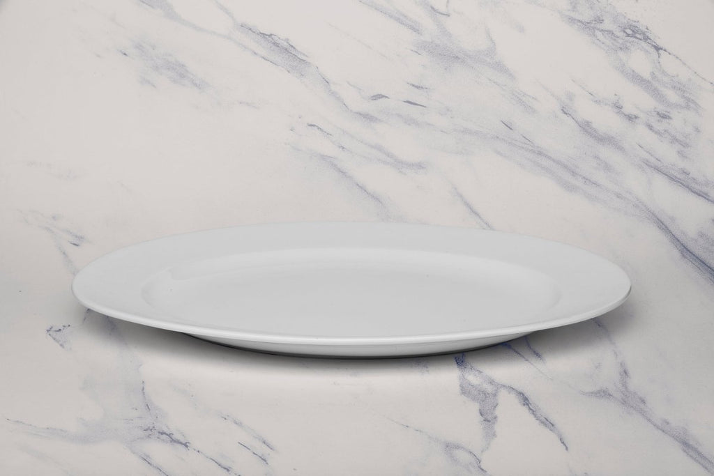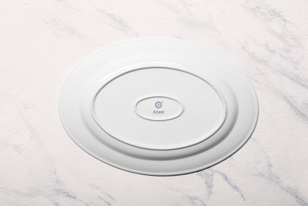 Ariane Prime 12 3/5'' x 8 2/3'' Prime-Warm White Porcelain Oval Platter - 6/Case (APRARN000015032)