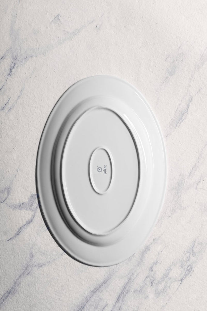 Ariane Prime 14 1/6'' x 8 2/3'' Eclipse White Porcelain Oval Platter - 6/Case (APRARN120015036)