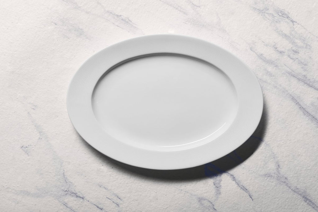 Ariane Prime 14 1/6'' x 8 2/3'' Orba White Porcelain Oval Platter - 6/Case (APRARN121015036)