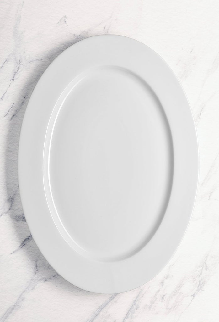 Ariane Prime 17 5/7" x 12 2/5'' Prime - Warm White Porcelain Oval Platter - 3/Case (APRARN000015045) - iFoodservice Online