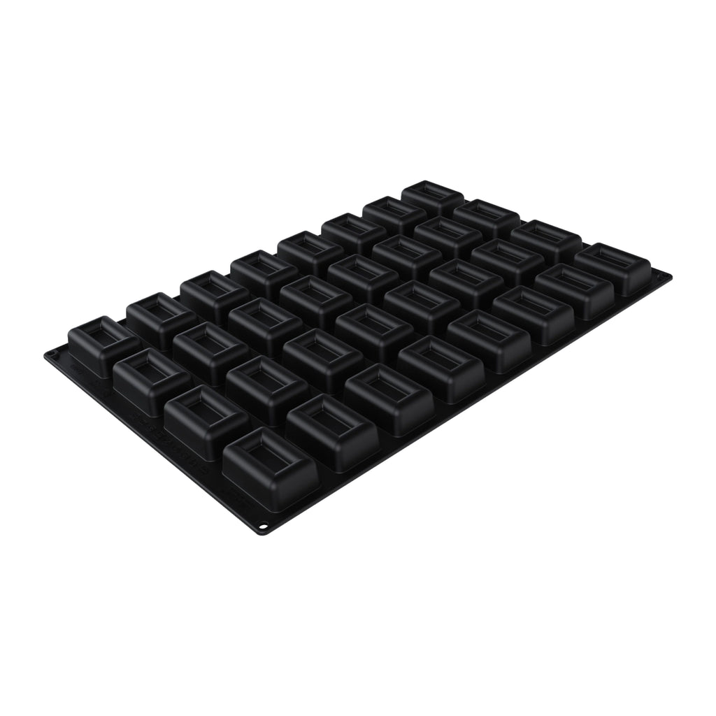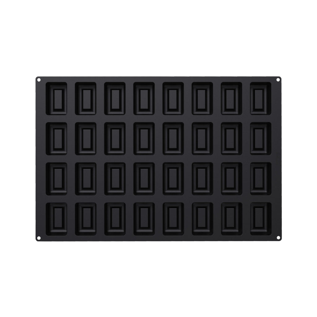 The Louis Tellier Silikomart 60x40 - N.32 Rectangle Savarin (SQ089) is a high-quality silicone baking mold designed for professional and home bakers. Measuring 78x51mm with a height of 28mm, it features 32 rectangular cavities, perfect for creating elegant Savarin cakes, mousses, or desserts. Made from durable, non-stick silicone, it ensures easy release and even baking, making it an ideal choice for precision pastry creations.
